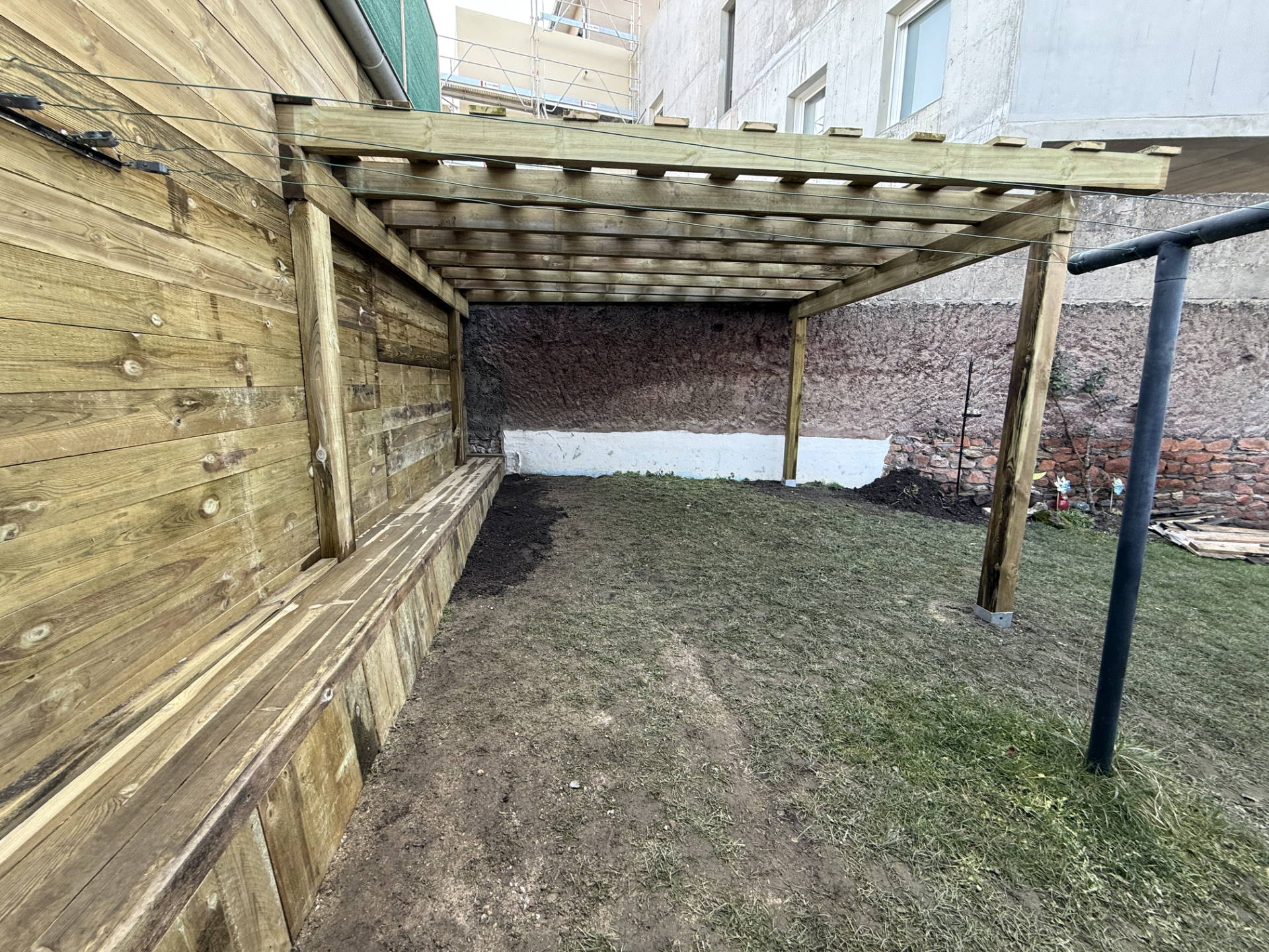 Une fois sa décision prise, nous avons procédé à la démolition et à l’évacuation du mur existant. Nous avons ensuite pu finaliser l’habillage du nouveau mur et réaliser la construction de la pergola, apportant ainsi confort, intimité et esthétisme à l’ensemble de l’espace.